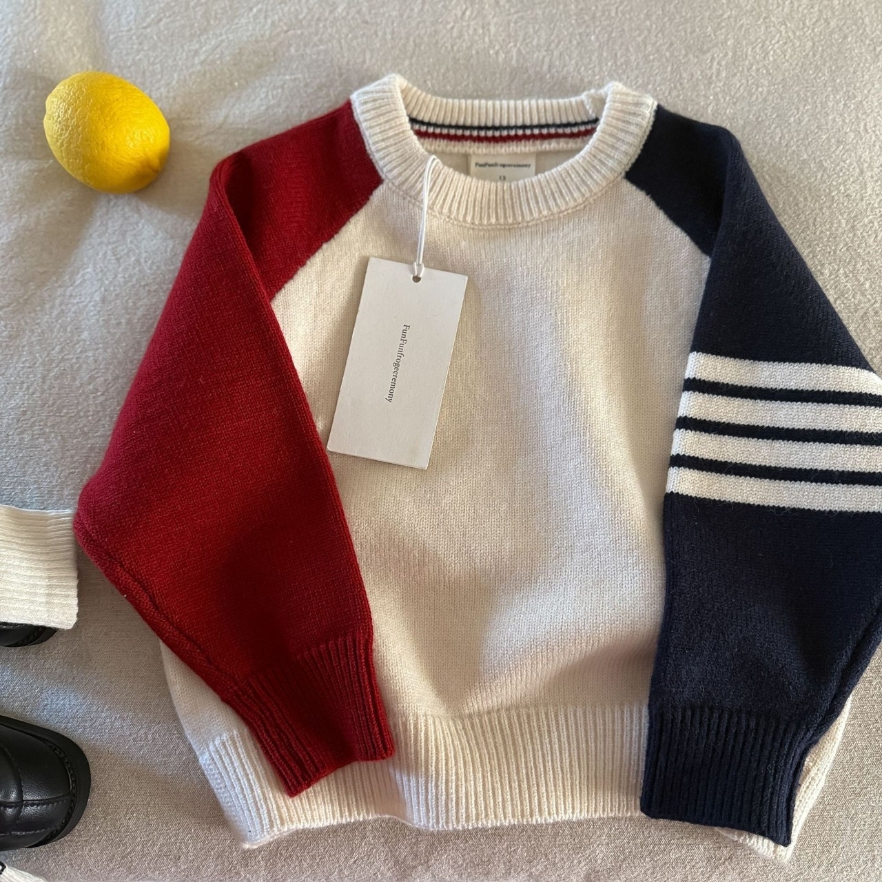 [수입]26봄,소매배색네줄니트