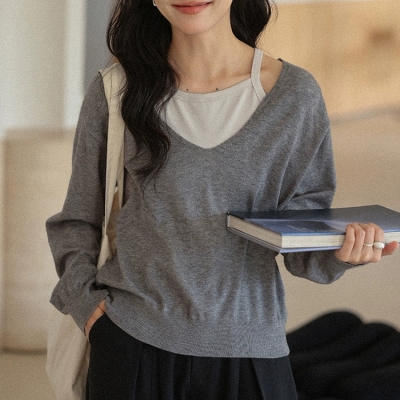 on.[NT724]배색나시레이어드니트