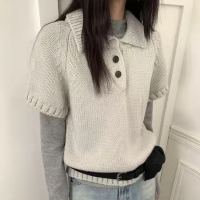 on.[NT721]카라넥버튼반팔니트